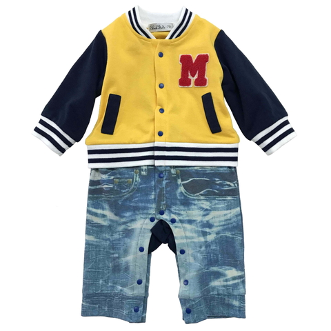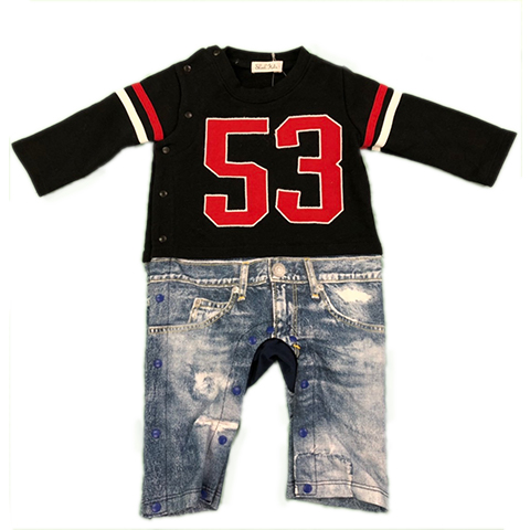 流行をとらえつつ、遊び心を盛り込んだベビー服です。お出かけの際、赤ちゃんに格好良く着てもらいたいアイテムです。展開サイズは70cm・80㎝です。